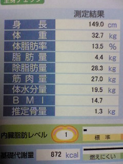 初めて知ったんが、あたしは代謝がいいこと!脂肪が燃焼しやすいから脂肪が付かないらしい(^-^;